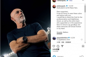 皮奥利社媒写道:“致所有的利雅得胜利球迷——亲爱的球迷们,能够与你们一同欢庆胜利是我的荣幸。我要感谢俱乐部展现出的专业精神与鼎力相助,以及在这段经历中支持我们的整个团队。”