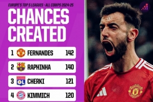 体育资讯5月1日讯 据Opta数据统计,本赛季欧洲五大联赛中所有赛事创造机会最多球员中,B费以142次领跑,拉菲尼亚140次排第二,里昂切尔基以121排名第三。